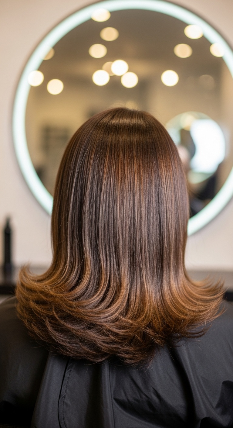 Alt text suggestion: Glossy brunette salon finish among the best summer 2026 hair colors for shine and low maintenance