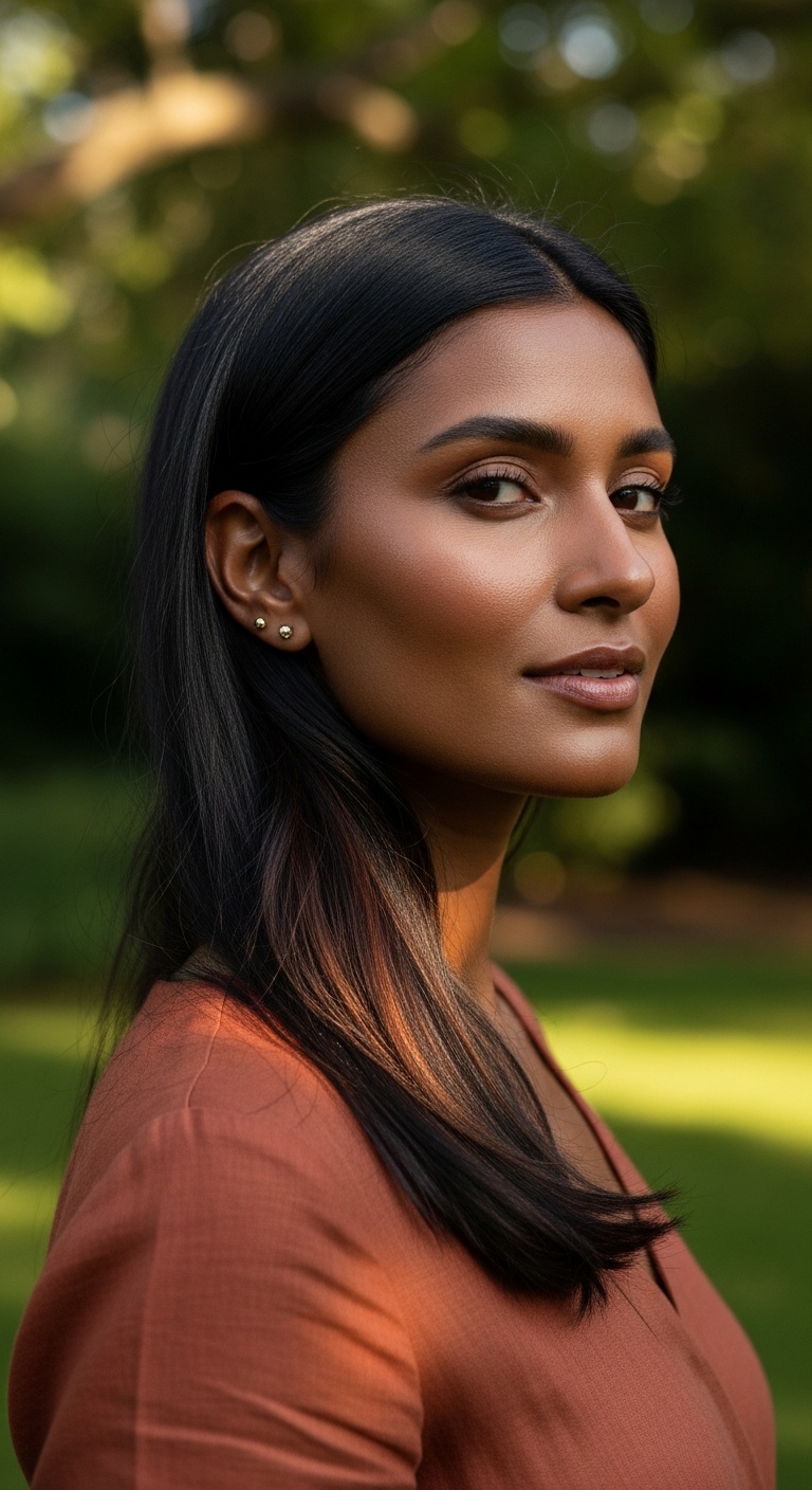 This isn’t flat box-dye black. It’s deep espresso. Near-black. Soft black with warmth. Sometimes a whisper of chocolate. Sometimes an almost-imperceptible navy undertone. The point is depth with movement, not darkness for the sake of drama.