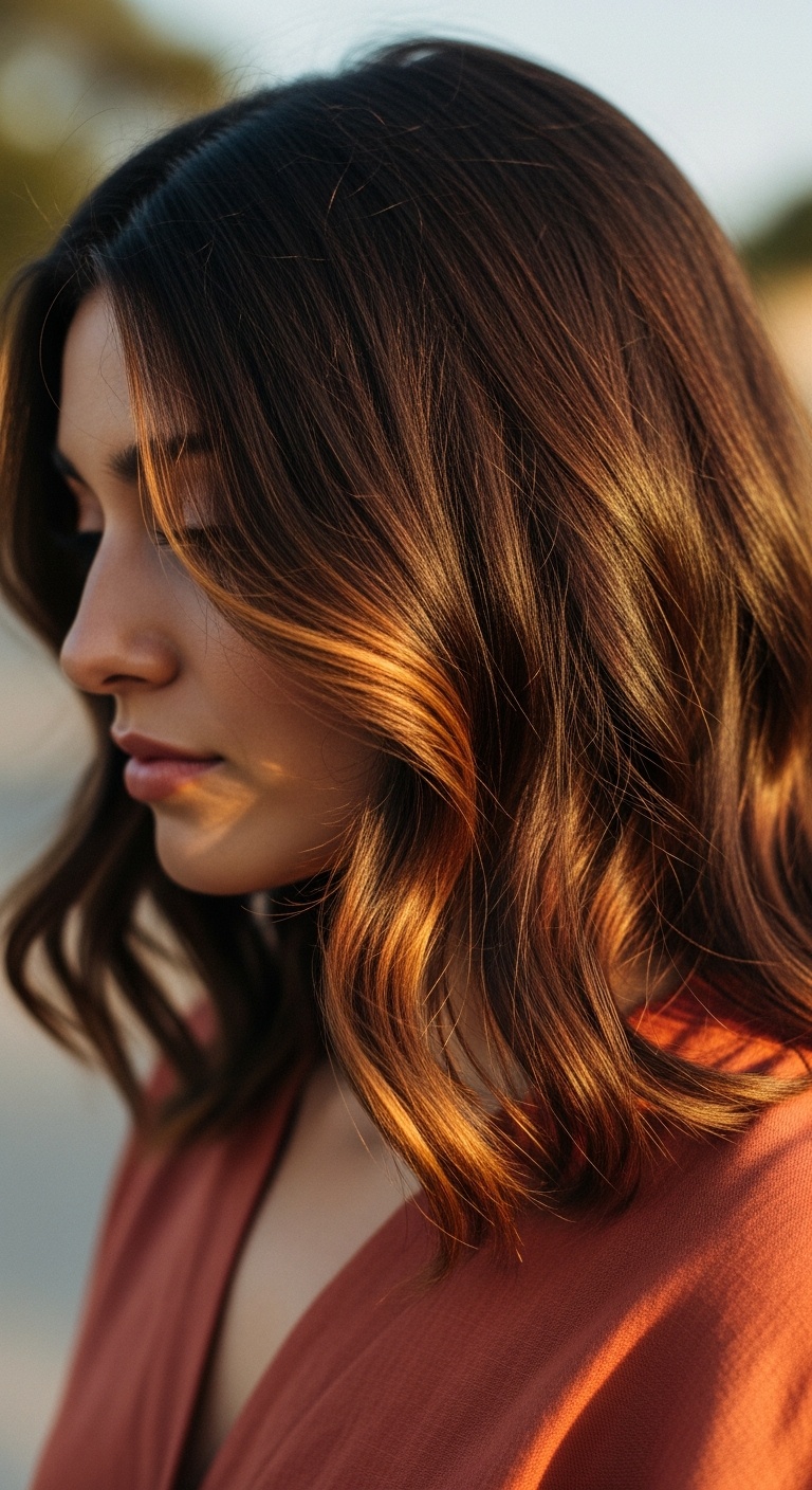Cinnamon glaze is one of the most underrated options on this list, and honestly, one of the best summer hair colors for brunettes if you want shine and warmth without heavy lifting.