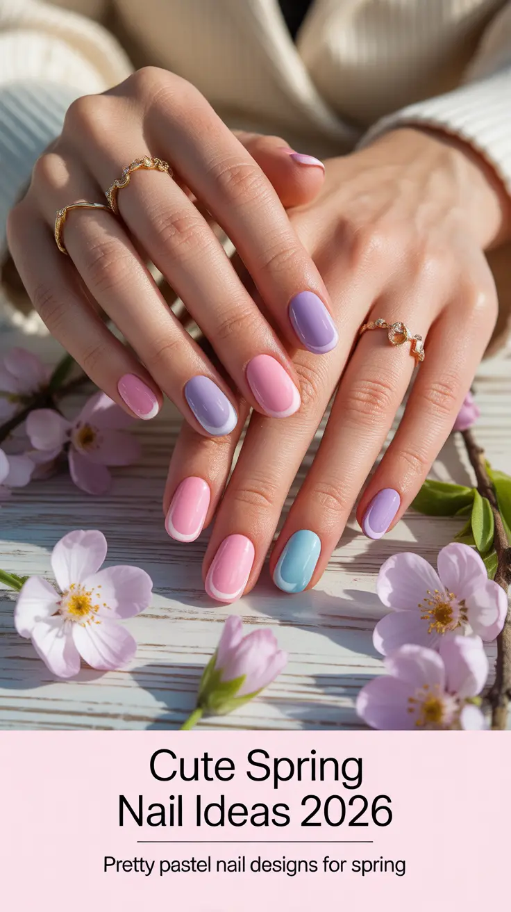Yes — mismatched pastels are one of the biggest cute spring nail designs of 2026. The key is keeping all shades in the same muted, dusty tonal family so the overall look feels curated rather than accidental.