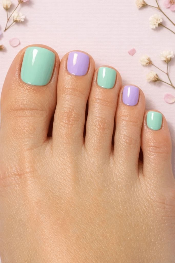 12. Mint and Lavender Alternating Spring Pedicure with Pastel Playfulness