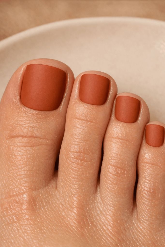 8. Matte Terracotta Spring Toe Nail Color with Earthy Warmth