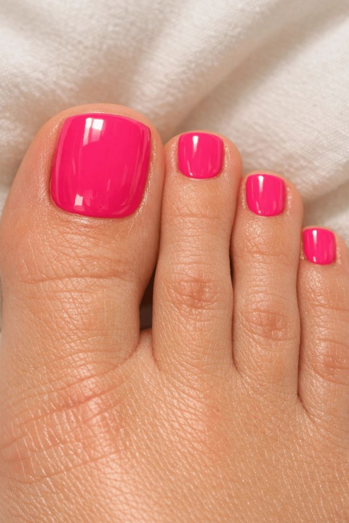 3. Hot Pink Spring Toe Nail Color with Glossy Confidence