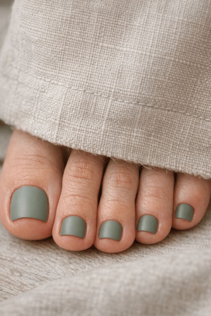 5. Matte Sage Green Spring Pedicure with Cozy Minimalism
