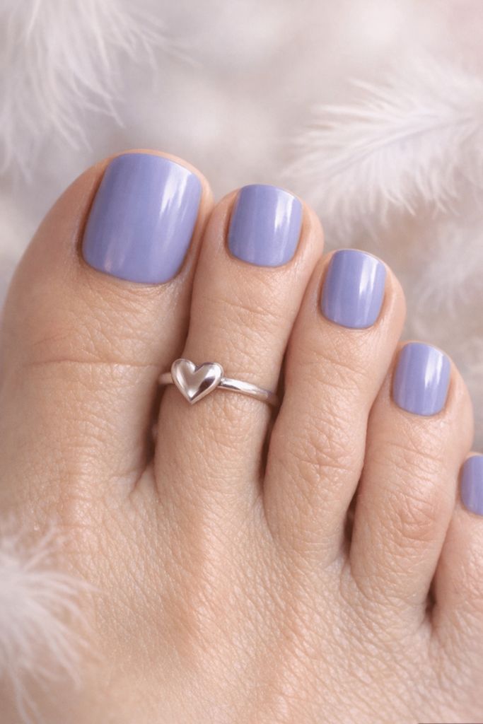 20. Glossy Lilac Spring Toe Nail Color with Heart Toe Ring Charm