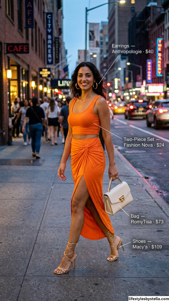 14. Orange Two-Piece Set: Vibrant Glam Summer Outfit Ideas 2026
