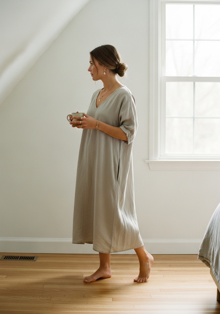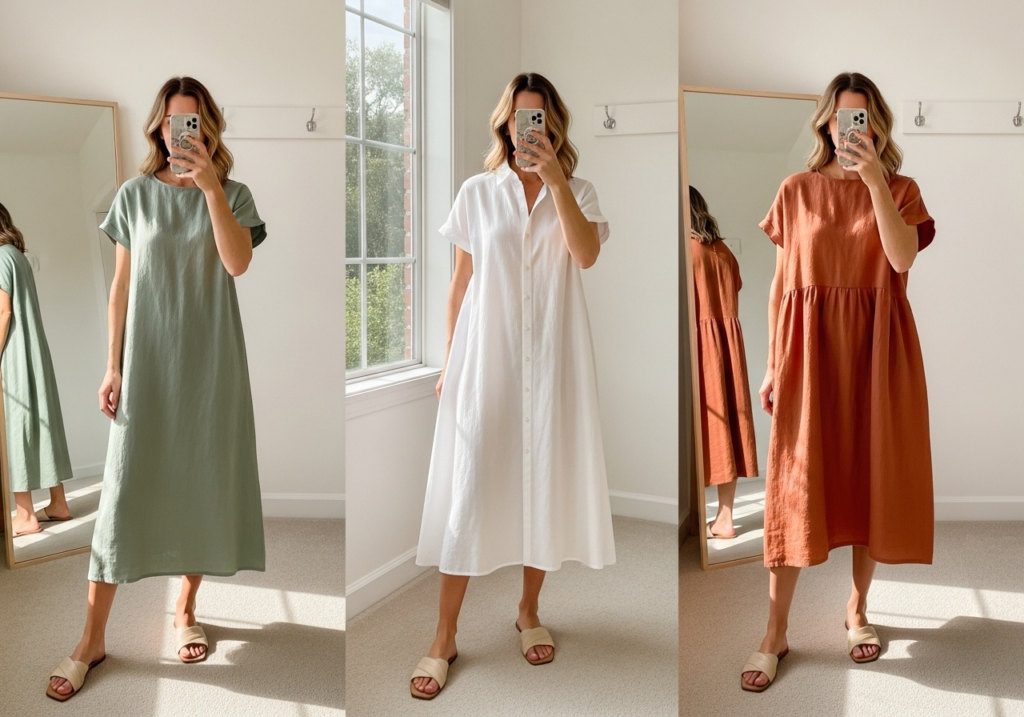 I was standing in front of my mirror last April, holding up a wrinkled oat-colored linen dress I’d bought on impulse during a lunch break, and I genuinely considered returning it. Not because it wasn’t beautiful — it was — but because I had no idea what to do with it. It just hung there, shapeless and vaguely giving “I make my own kombucha” energy, which, for the record, I do not.