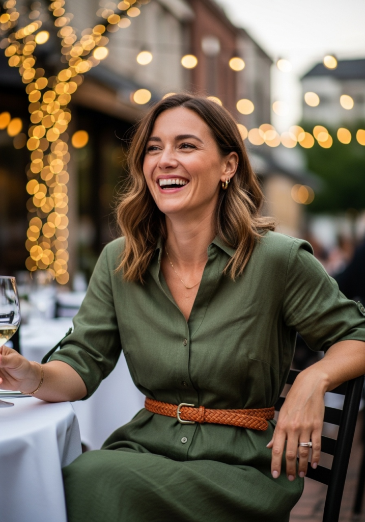 I wore a belted olive linen midi dress to my friend Priya’s birthday dinner last May at one of those outdoor restaurant patios with the string lights, and I felt incredible. The belt was just a thin woven leather one I’ve had for years — nothing fancy. But it pulled the whole dress in at the waist, gave me an actual shape, and suddenly the outfit had a point of view.