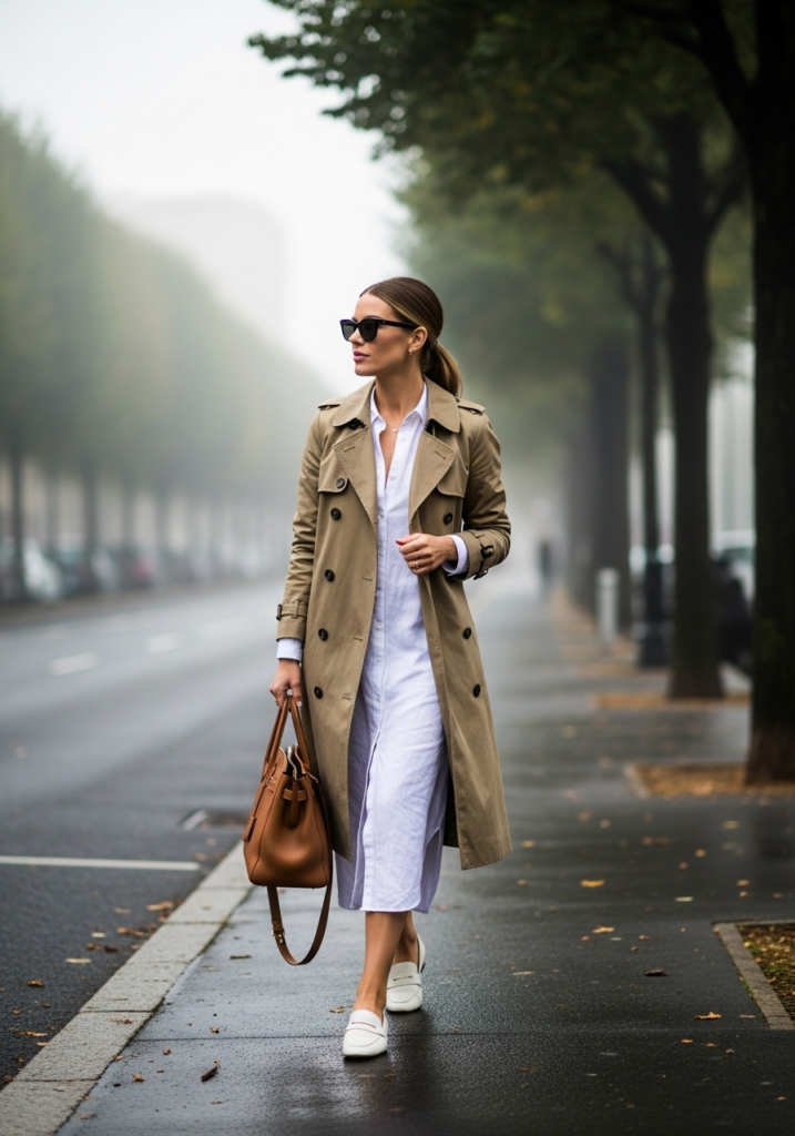 For cooler spring mornings, a lightweight trench over a linen dress is genuinely one of the most polished combinations out there. I wore my old khaki trench over a white linen shirt dress on a trip to Portland last spring and someone at the hotel asked me if I was a stylist. Reader, I am not. I was just cold and got lucky.