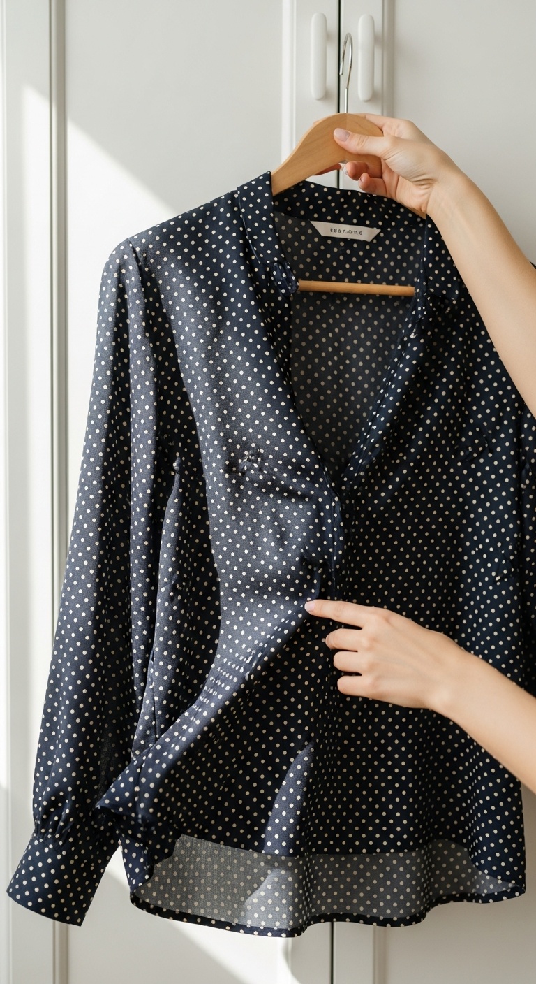 A silk or high-quality satin polka dot blouse works across seasons, dresses up and down beautifully, and tends to look much more elevated than a cheap synthetic version. The drape matters here. The sheen matters. The way the fabric moves matters.