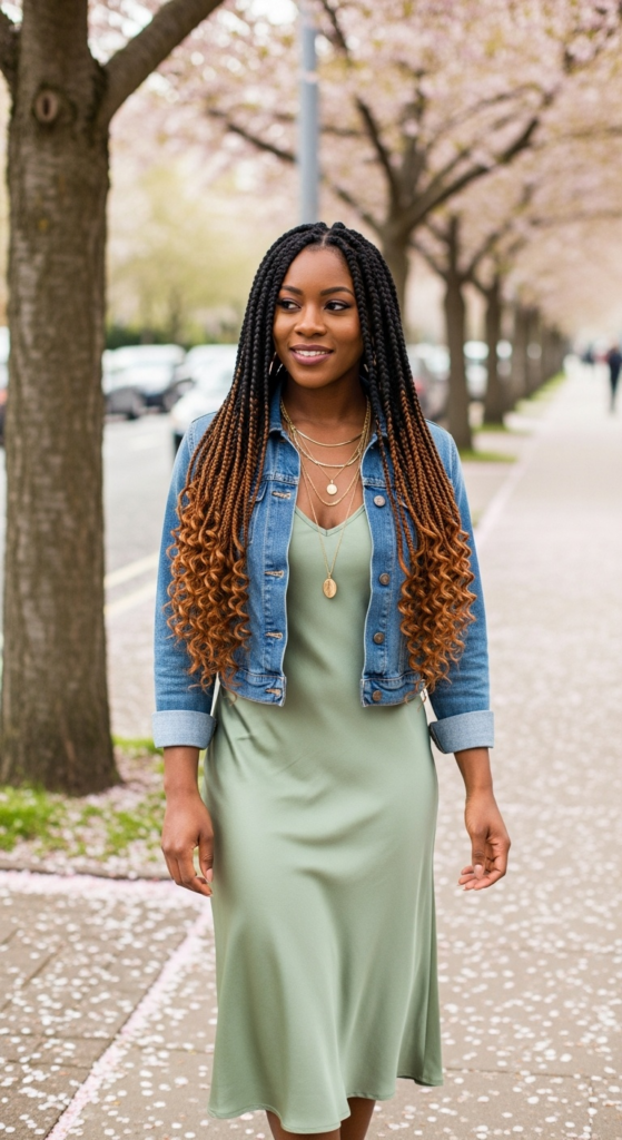 The loose curly ends soften everything. The finish looks lighter. The whole style reads effortless in a way that classic box braids sometimes don’t. I wore a set to a spring engagement party recently and got more compliments than I’ve had with almost any other braid style.