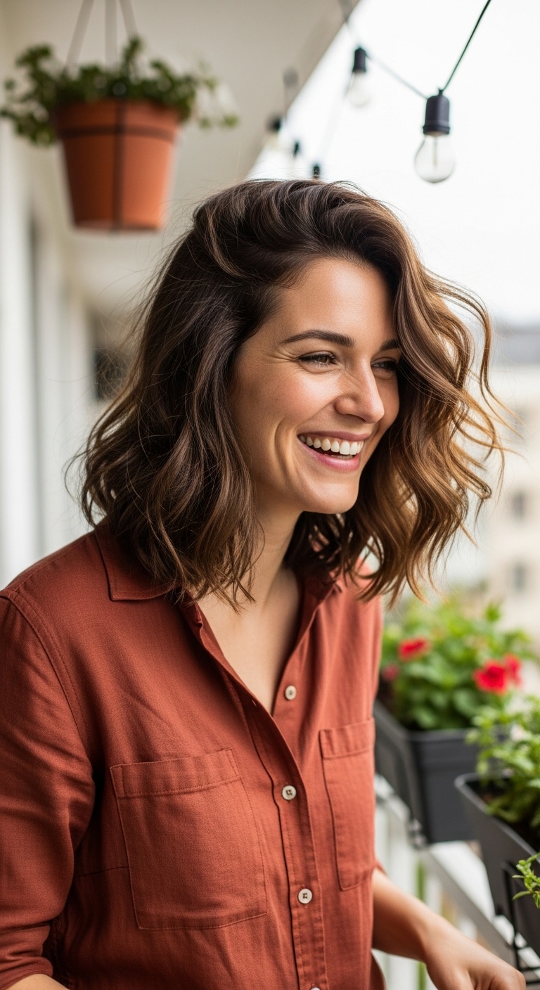 The reason I love this cut so much is that it looks expensive without acting high-maintenance. You get a fuller shape than a heavily layered lob, but you still have movement around the face. On medium-thick or slightly wavy hair, it often looks best when it is barely styled at all.