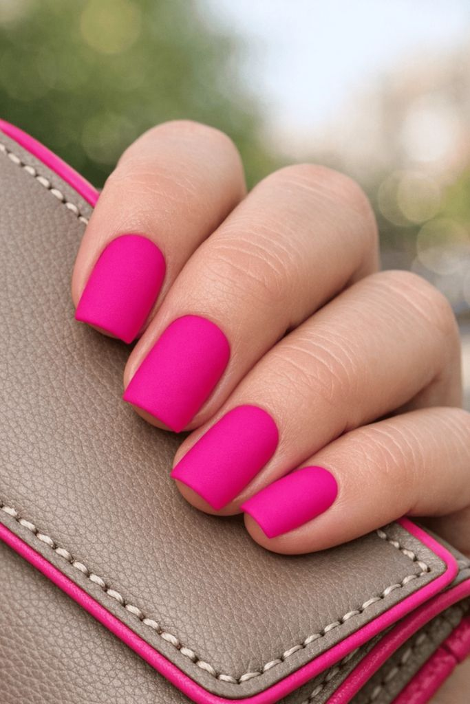 10. Hot Pink Matte Spring Nails with a Playful Edge