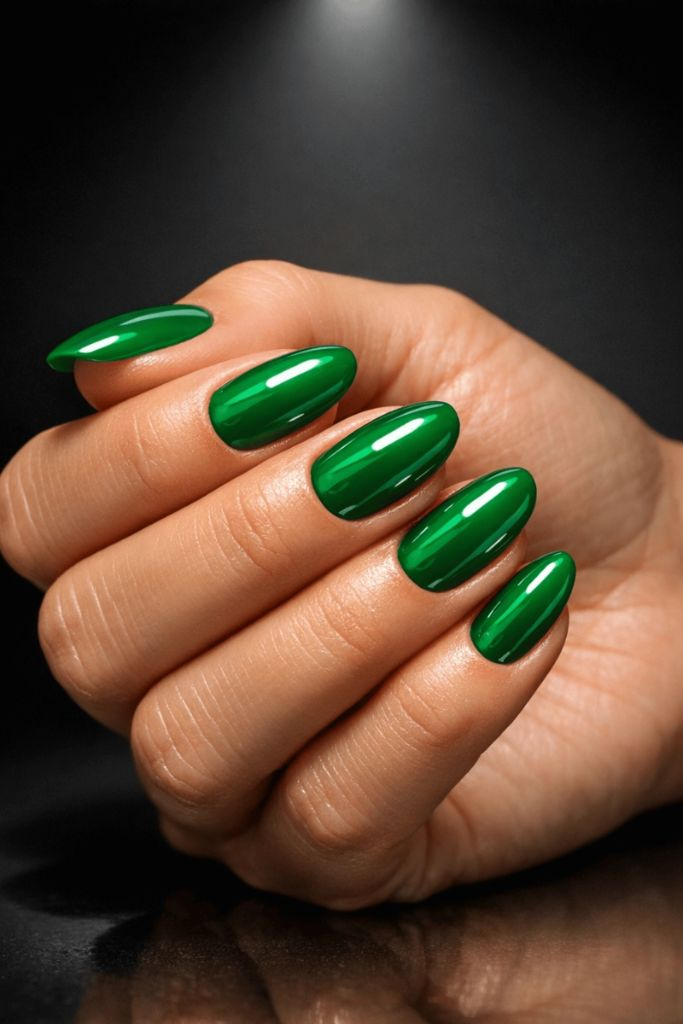 12. Deep Jewel-Tone Emerald Glossy Spring Nails