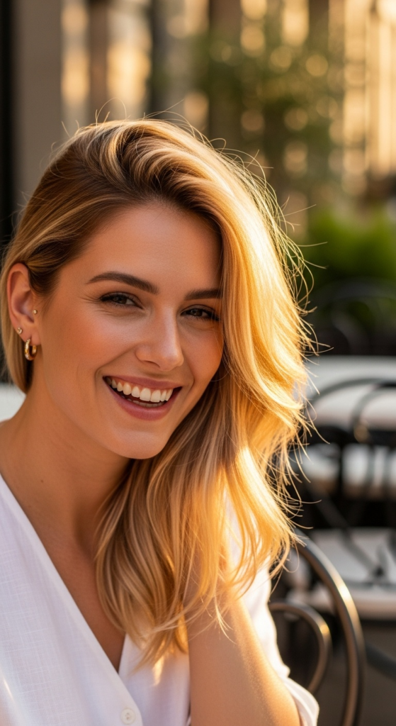 That subtle warmth can make blonde hair look more natural, more expensive, and honestly more flattering in daylight.